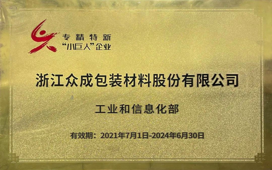 浙江EVO视讯官网于去年7月份被工业和信息化部授予第三批国家级“专精特新‘小巨人’企业”称号。